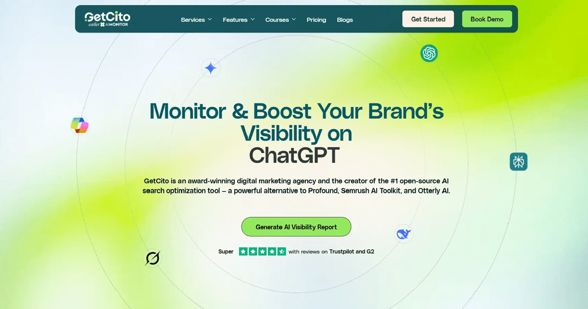 Diferenciador clave: GEO y brand perception en respuestas de IA. Sin capturas disponibles — sitio Next.js con carga dinámica.